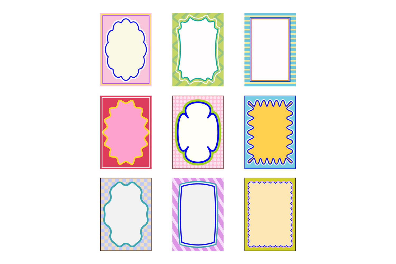 Group of playful blank border frame cards with various wavy, striped, and dotted patterns, offering versatile templates for invitations, notes, or decorative elements