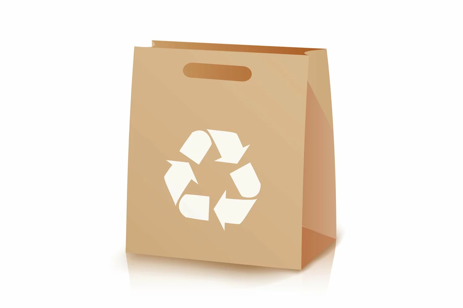 Recycle Shopping Brown Bag. Illustration Of Recycled Brown Shopping Paper Bag With Handles. Recycling Symbol. Isolated