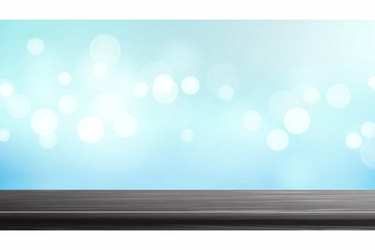 Similar Design Products to Wood Table Top Vector. Blue Bokeh Background. Empty Smooth
