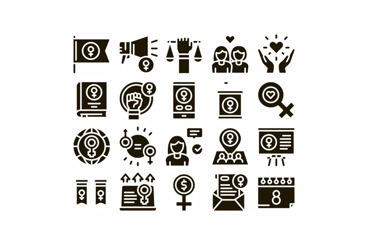 Feminism Woman Power Glyph Set Vector