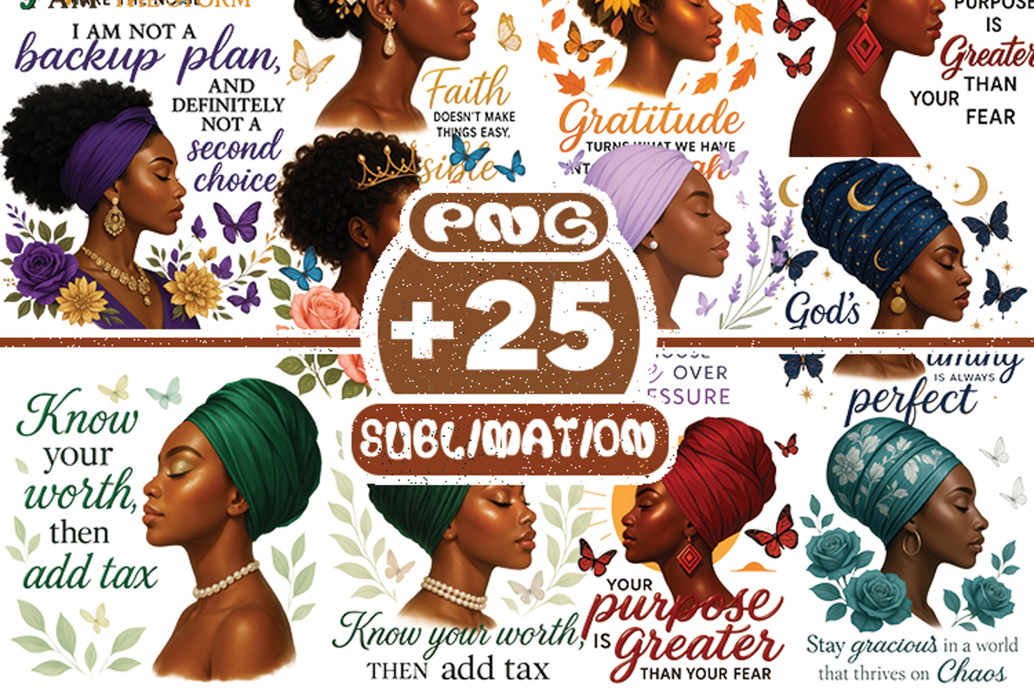 Celebrate strength, beauty, and empowerment with this Inspirational Afro Women Quotes Clipart Bundle. Featuring powerful Afrocentric quotes paired with beautiful illustrations of Black women, this collection is perfect for sublimation, scrapbooking, t-shirts, wall art, mugs, and more.