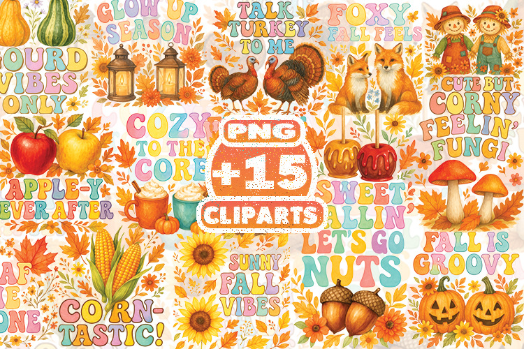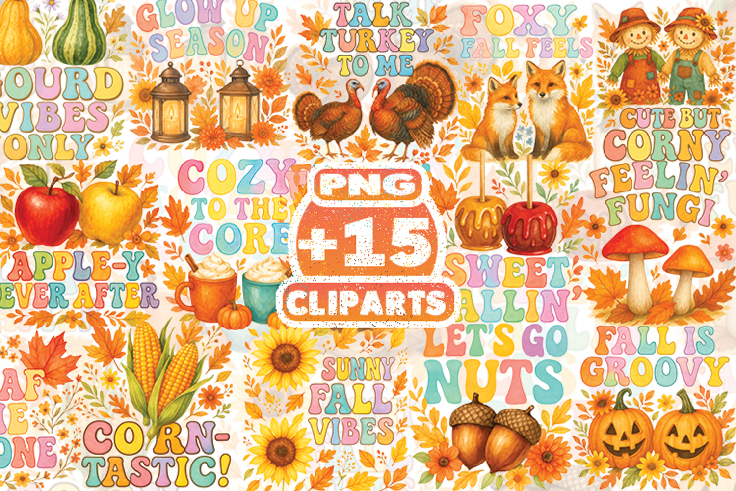 Add a touch of retro vibes to your autumn projects with this Retro Fall Sublimation Clipart Bundle! 🌻🍁 Featuring groovy pumpkins, cozy fall quotes, vintage florals, and 70s-inspired designs, this collection is perfect for creating unique seasonal items.