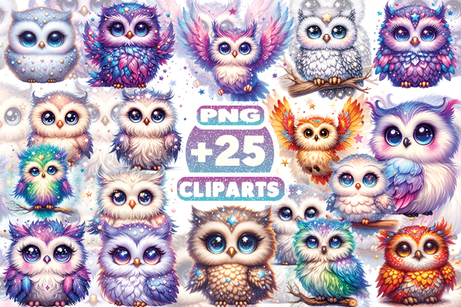 These sparkly owl cliparts will make your projects shine with magic and cuteness. Perfect for DIY crafts, gifts, and digital projects alike.