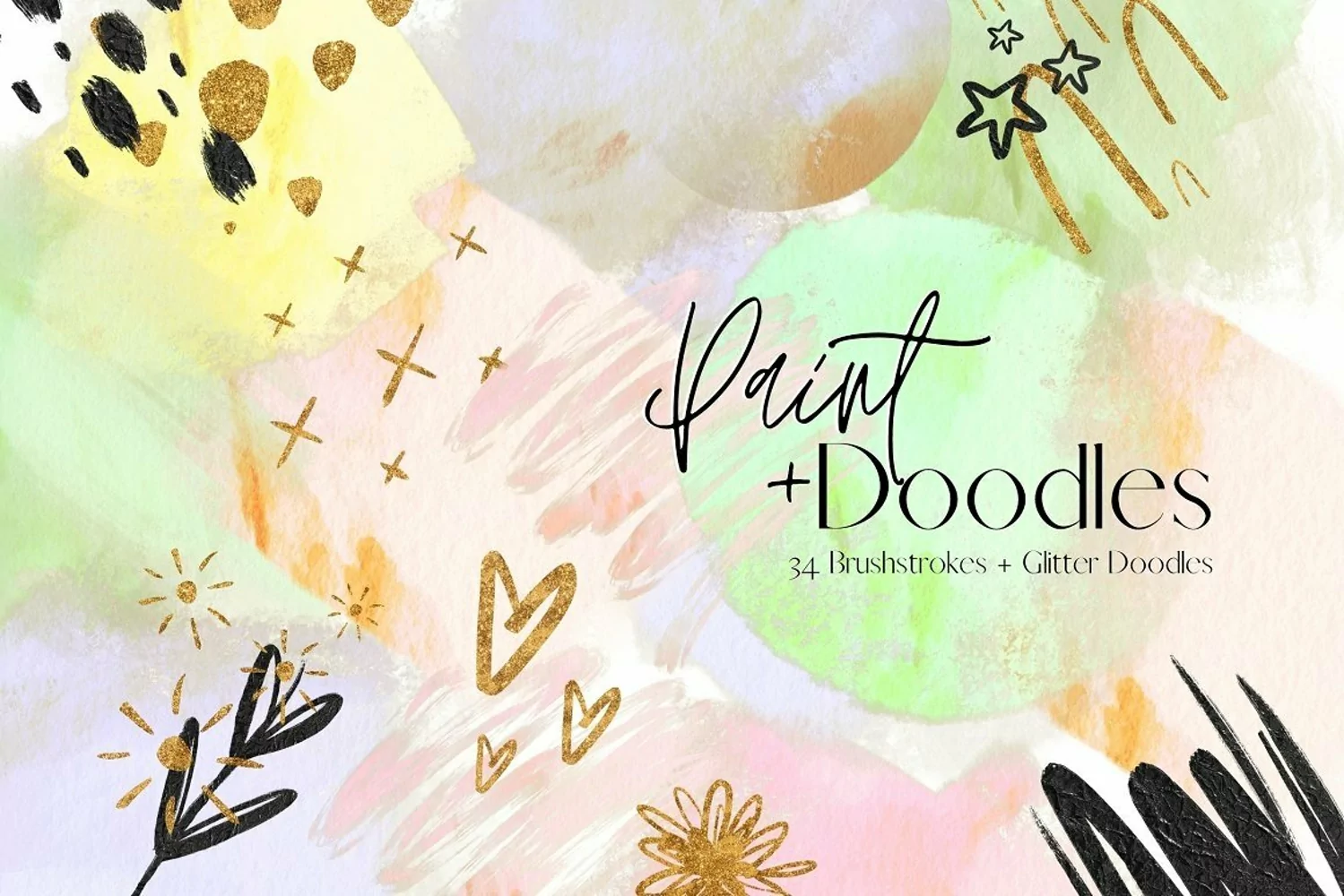 Our Green, Yellow, Pink Colourful Paint and Glitter Doodles designs are made to stand out! Use this brushstroke clipart set to create beautiful invitations, wall art, stickers, business cards, t-shirt designs and more.
