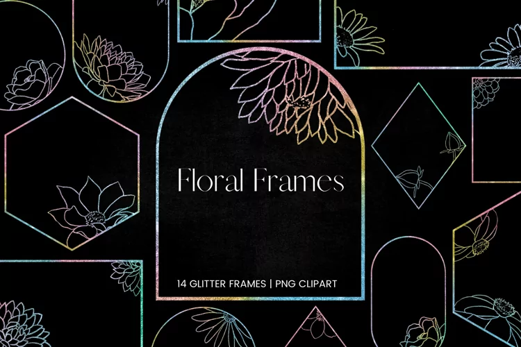 Our Rainbow Glitter Floral Frames Clipart are made to stand out! Use this Frame Clipart to create beautiful invitations, wall art, stickers, business cards, t-shirt designs and more.