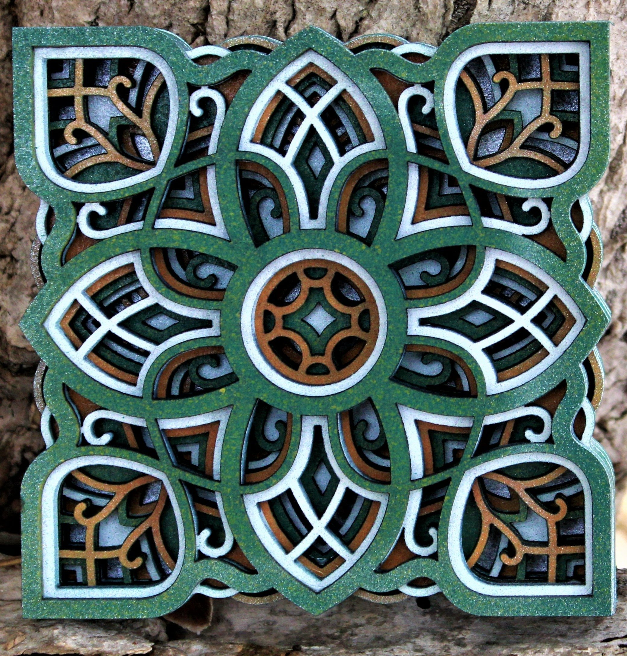 Use this digital file to cut and craft a beautiful 3D Shadowbox Mandala from paper, cardstock, plywood and a number of different materials.