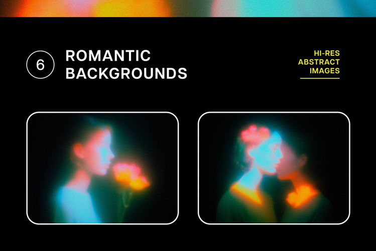 This extensive collection was designed for those moments when a bold final touch is all you need. It features 6 JPG backgrounds, so it's compatible with any design app, from Adobe Photoshop to Procreate. The versatility is truly striking: the backgrounds work for product presentations, collages, print designs, posters, product packaging, branding identities, user interfaces, and more.
