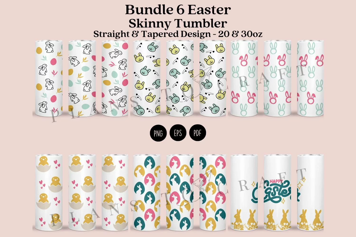 bundle easter skinny tumbler sublimation wrap, for 20oz and 30oz straight and tapered skinny tumbler.