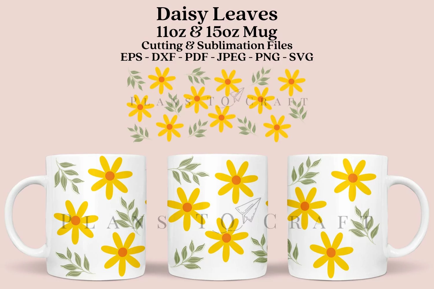 spring, floral, flower, daisy template for glass mug 11oz and 15oz full wrap, SVG, PNG, JPG, PDF, DXF, EPS for Cricut, Silhouette, and sublimation.