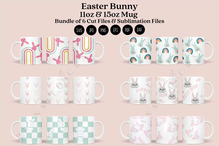 bundle 6 easter template for glass mug 11oz and 15oz full wrap, SVG, PNG, JPG, PDF, DXF, EPS for Cricut, Silhouette, and sublimation.