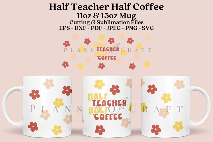 Half Teacher Half Coffee template for glass mug 11oz and 15oz full wrap, SVG, PNG, JPG, PDF, DXF, EPS for Cricut, Silhouette, and sublimation.