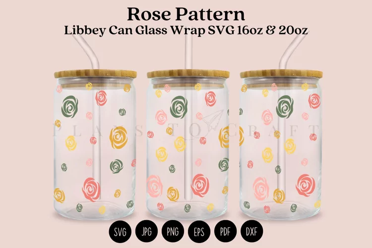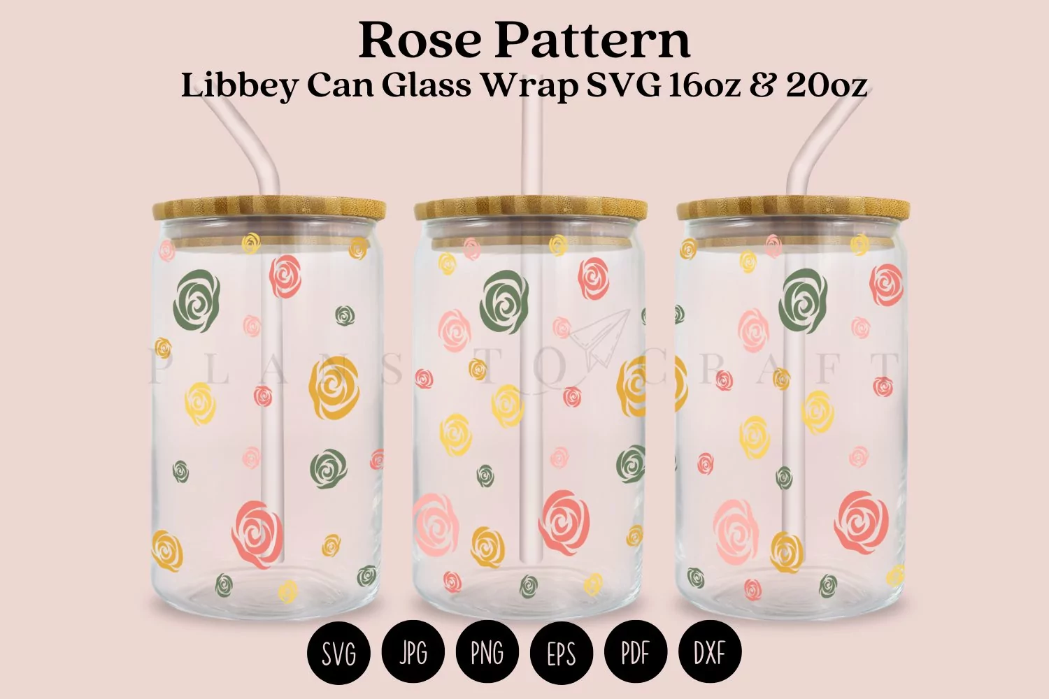 rose spring floral flower can glass full wrap for Libbey Glass 16oz and 20oz PNG, DXF, SVG, JPG, EPS, PDF for Cricut and Silhouette, digital download.