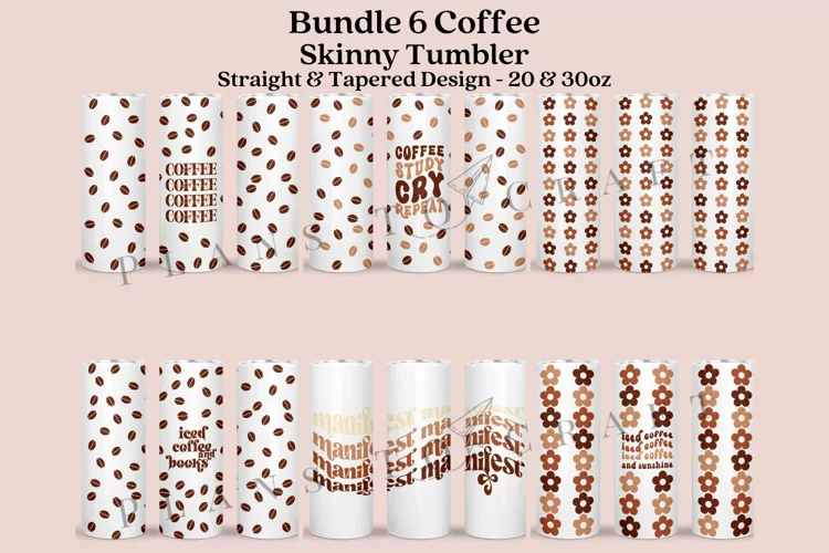 Bundle 6 Iced Coffee skinny tumbler sublimation wrap, for 20oz and 30oz straight and tapered skinny tumbler.