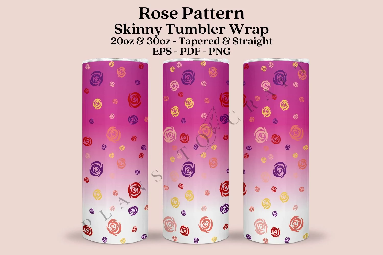 Rose Pattern skinny tumbler sublimation wrap, for 20oz and 30oz straight and tapered skinny tumbler.