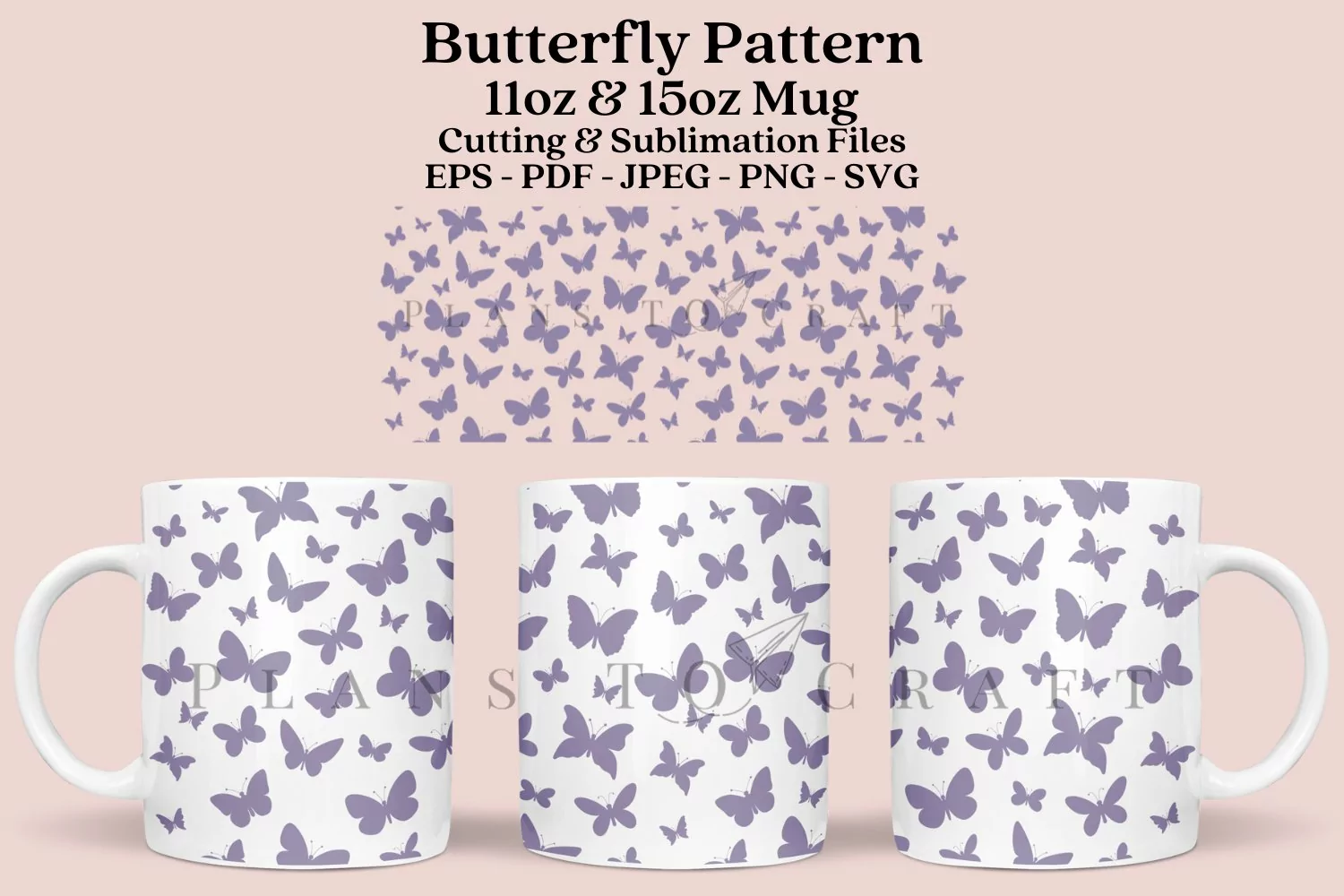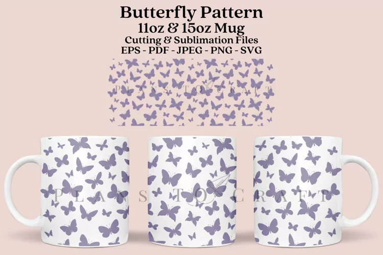Butterfly Pattern template for glass mug 11oz and 15oz full wrap, SVG, PNG, JPG, PDF, DXF, EPS for Cricut, Silhouette, and sublimation.