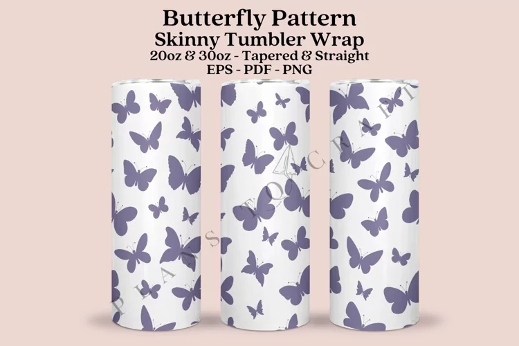 butterfly pattern skinny tumbler sublimation design for 20oz and 30oz skinny tumbler sublimation wrap