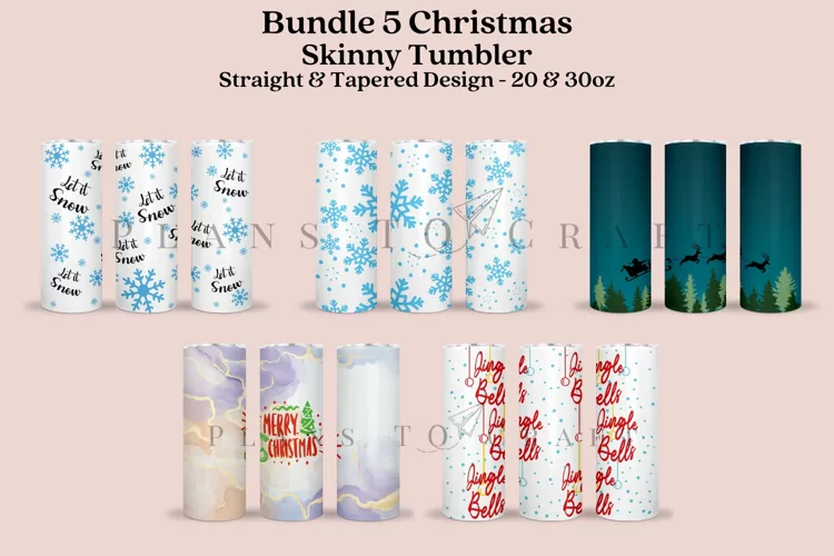 Bundle 5 Christmas skinny tumbler sublimation wrap, for 20oz and 30oz straight and tapered skinny tumbler.
