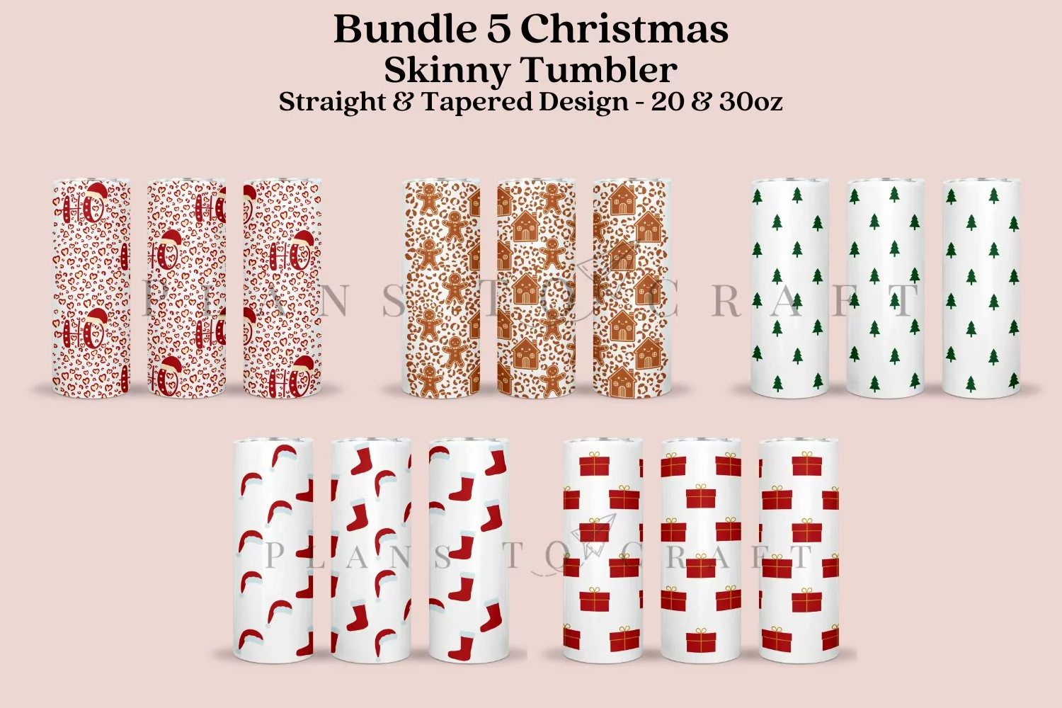 Bundle 5 Christmas skinny tumbler sublimation wrap, for 20oz and 30oz straight and tapered skinny tumbler.