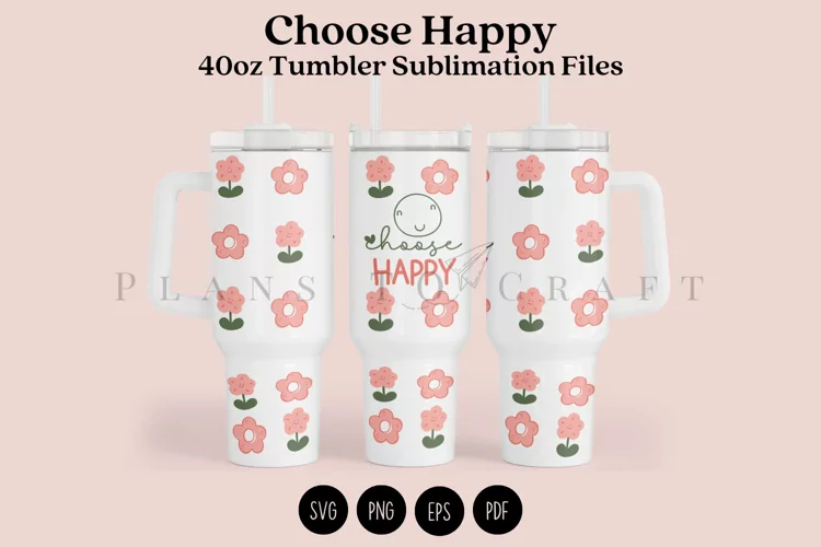 Choose Happy 40oz Tumbler Sublimation Wrap SVG