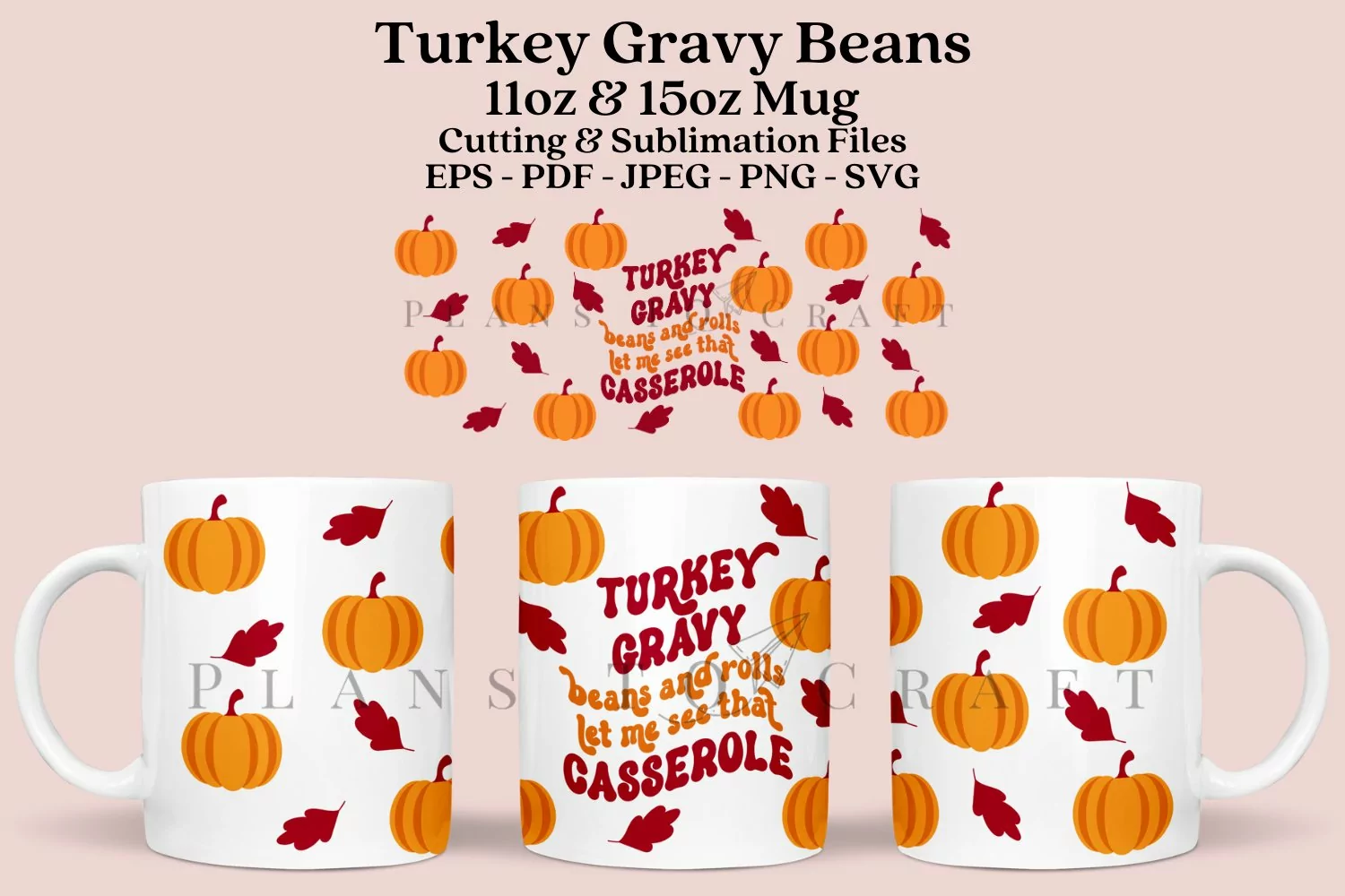 Turkey Gravy Beans and Rolls let me see that casserole autumn fall season template for glass mug 11oz and 15oz full wrap, SVG, PNG, JPG, PDF, DXF, EPS for Cricut, Silhouette, and sublimation.