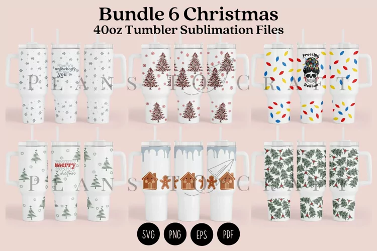 Bundle 6 Christmas 40oz Tumbler Sublimation Wrap SVG