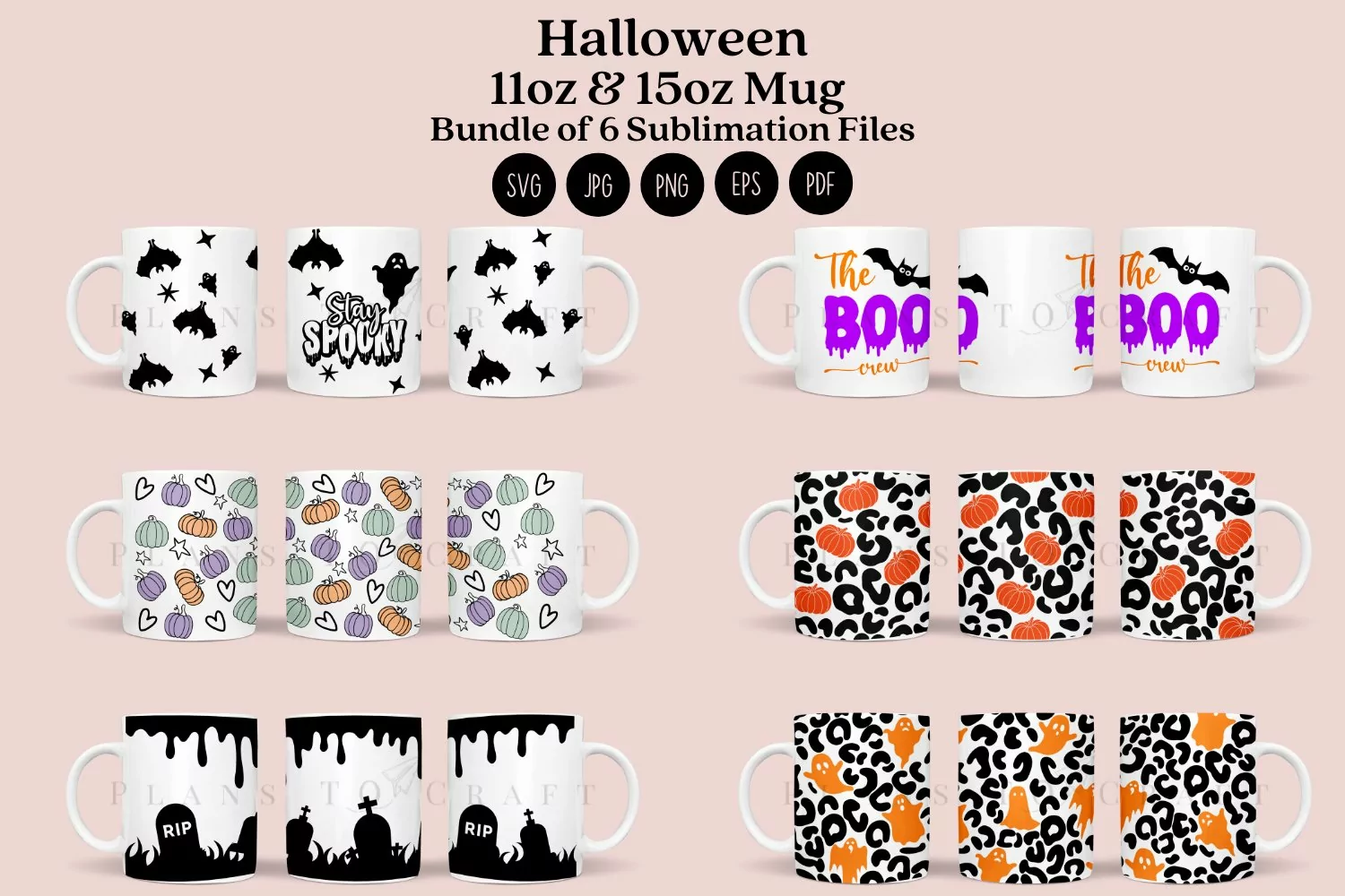 Bundle 6 Halloween Mug Sublimation Wrap 11oz - 15oz