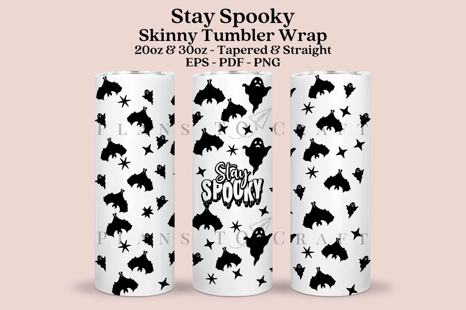 Stay Spooky Halloween skinny tumbler sublimation wrap, for 20oz and 30oz straight and tapered skinny tumbler.