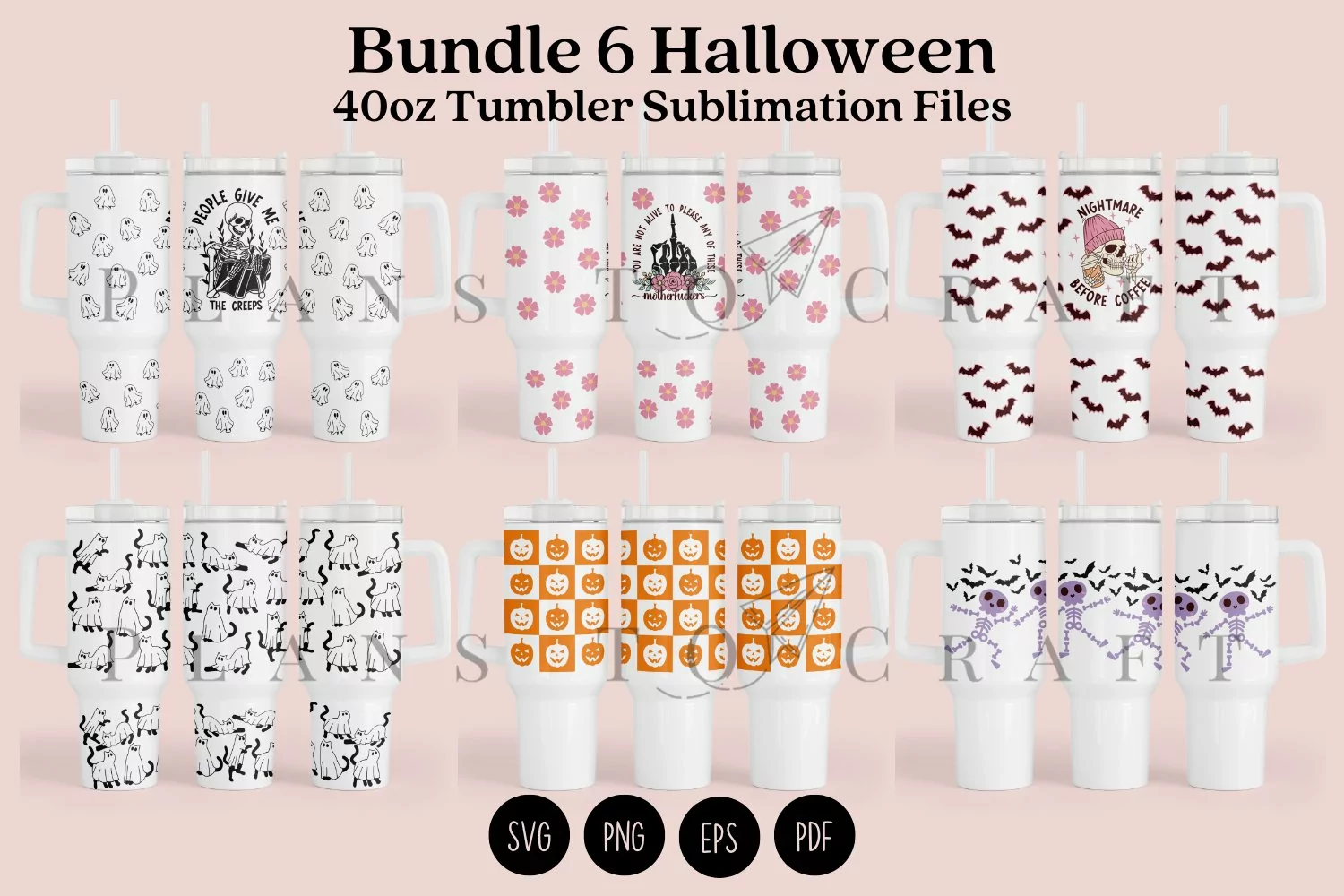 Bundle 6 Halloween 40oz Tumbler Sublimation Wrap SVG