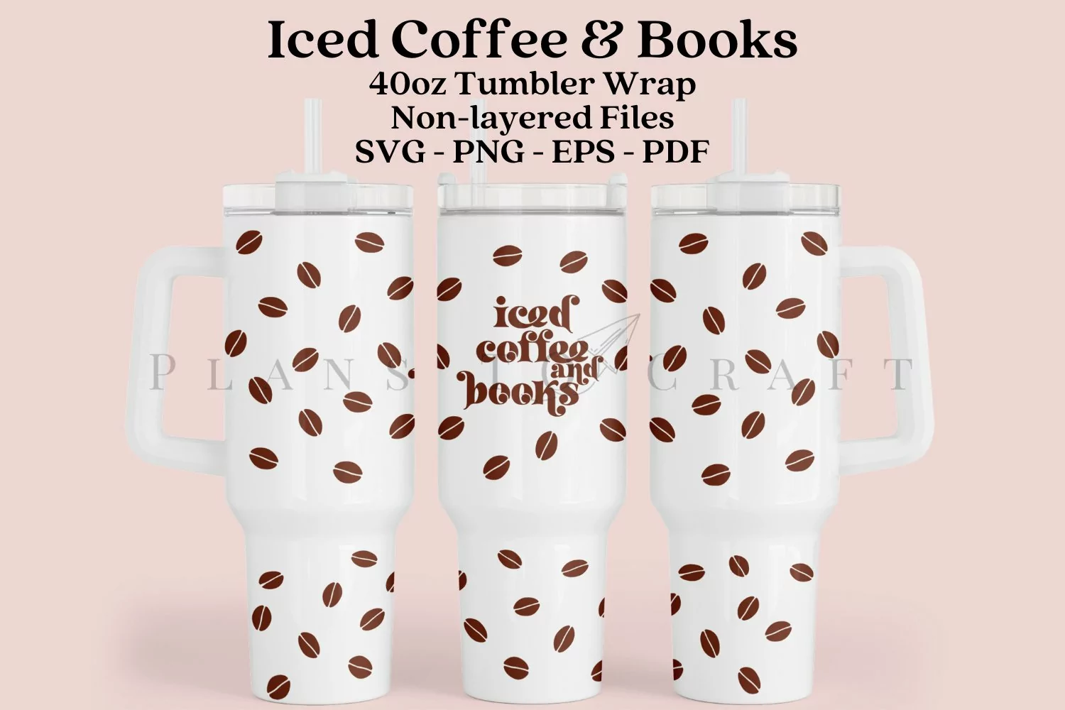 Iced Coffee and Books 40oz Tumbler Sublimation Wrap SVG PNG PDF EPS instant download digital files