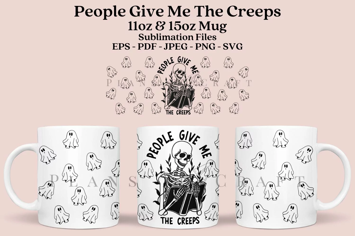 People Give Me the Creeps Halloween template for glass mug 11oz and 15oz full wrap, SVG, PNG, JPG, PDF, DXF, EPS for Cricut, Silhouette, and sublimation.