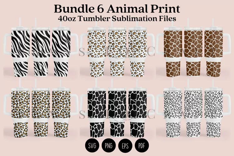 Bundle 6 Animal Print 40oz Tumbler Sublimation Wrap SVG