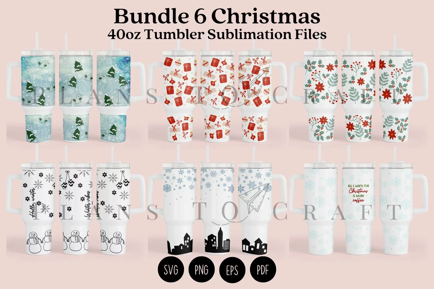 Bundle 6 Christmas 40oz Tumbler Sublimation Wrap SVG