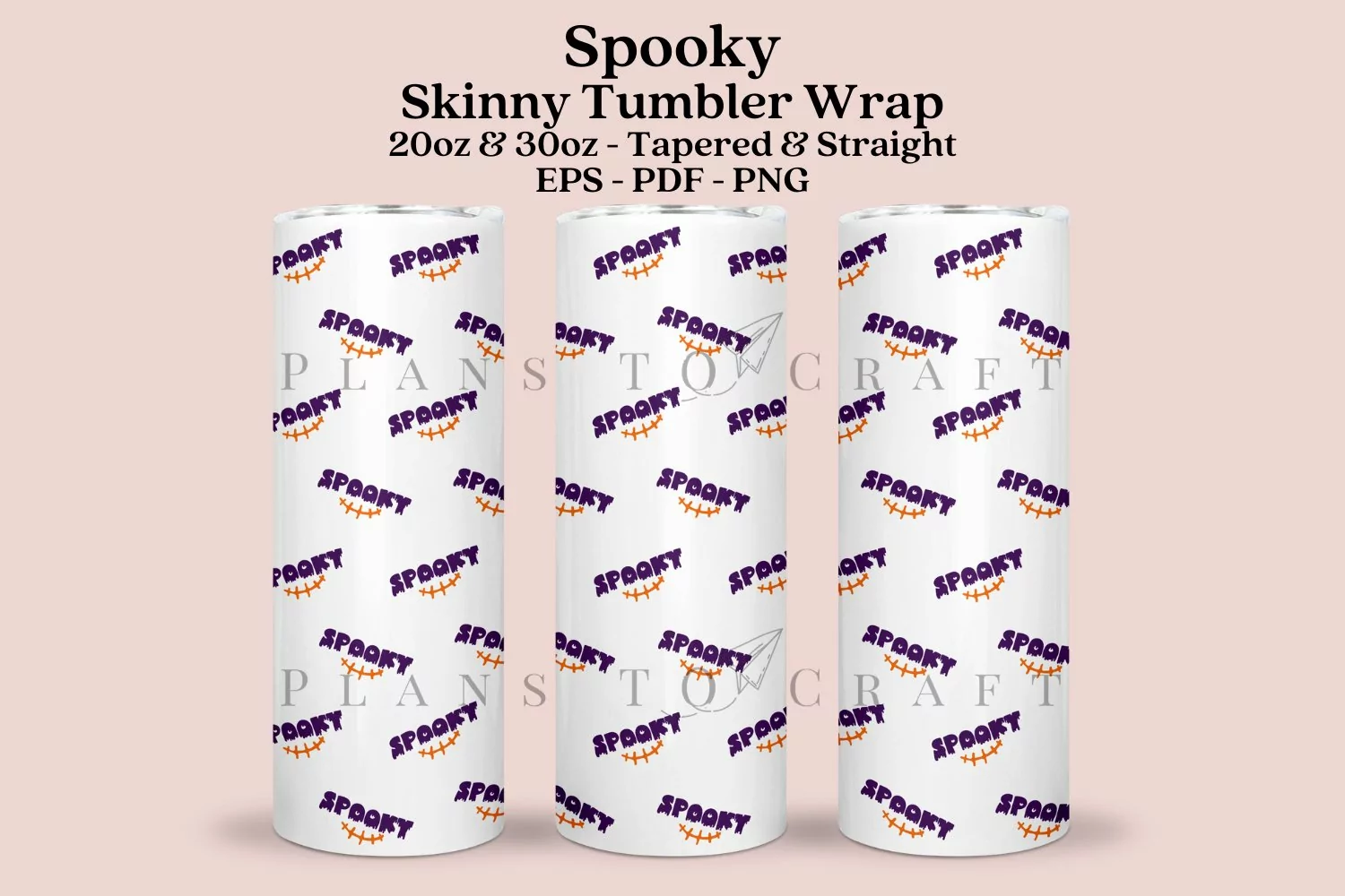 Spooky Halloween skinny tumbler sublimation wrap, for 20oz and 30oz straight and tapered skinny tumbler.