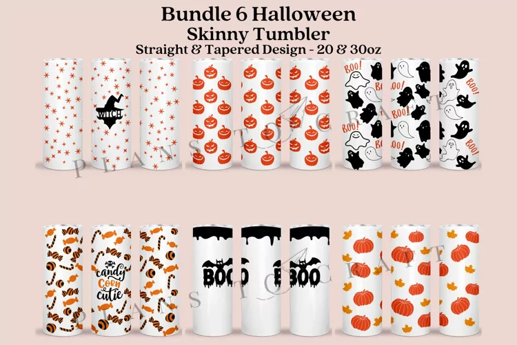 Bundle 6 Halloween skinny tumbler sublimation wrap, for 20oz and 30oz straight and tapered skinny tumbler.