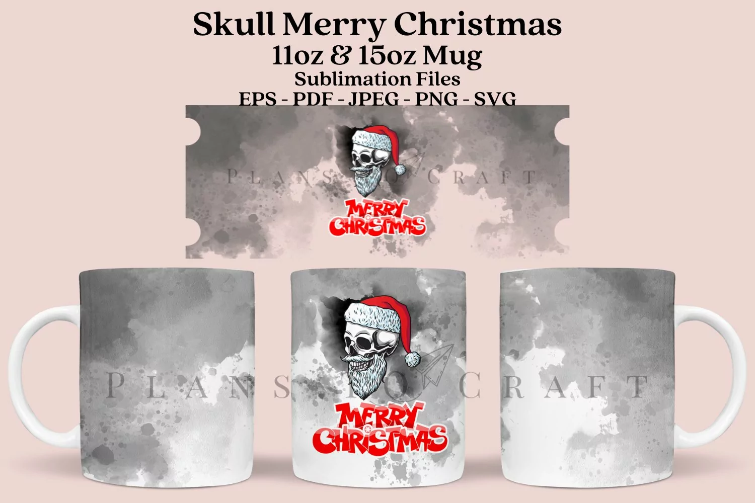 Skull Merry christmas glass mug 11oz and 15oz full wrap, SVG, PNG, JPG, PDF, DXF, EPS for Cricut, Silhouette, and sublimation.