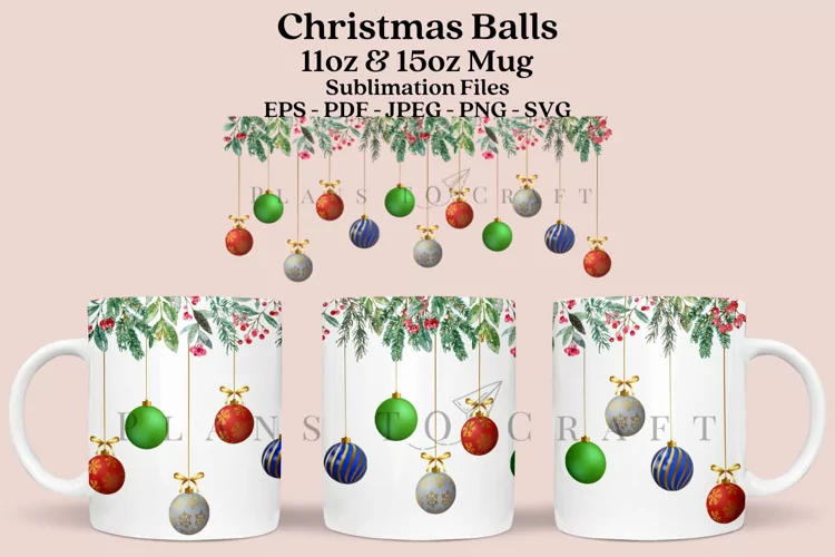 Christmas Ornaments christmas glass mug 11oz and 15oz full wrap, SVG, PNG, JPG, PDF, DXF, EPS for Cricut, Silhouette, and sublimation.
