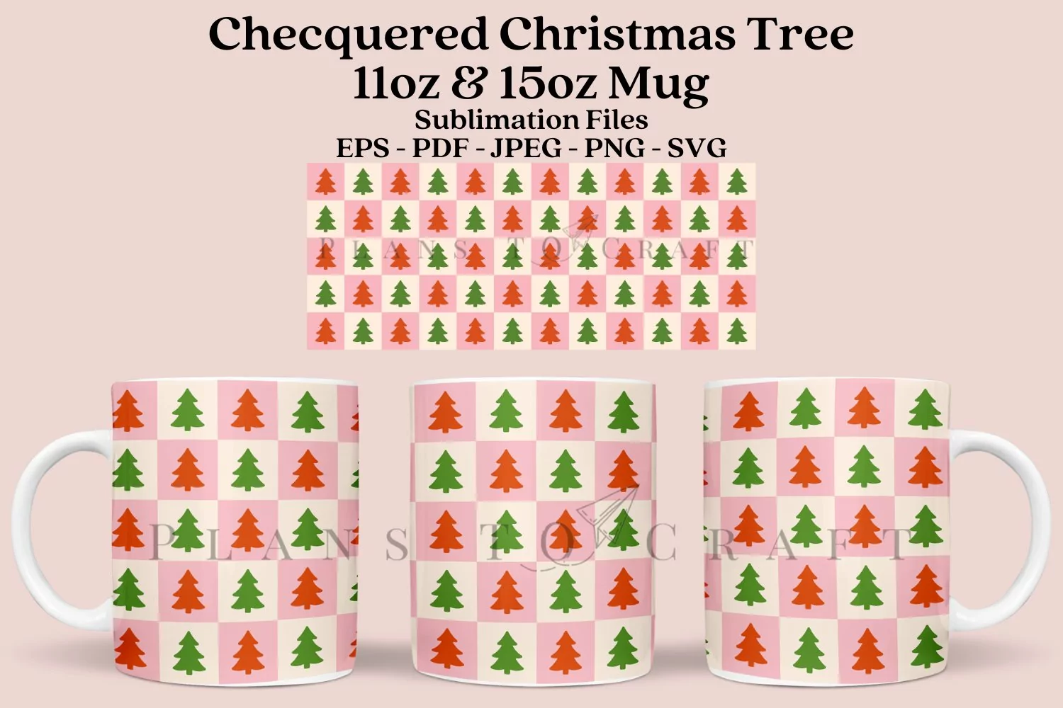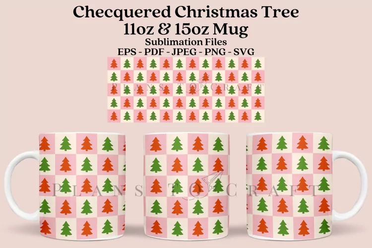 Retro Chequered Christmas Tree glass mug 11oz and 15oz full wrap, SVG, PNG, JPG, PDF, DXF, EPS for Cricut, Silhouette, and sublimation.