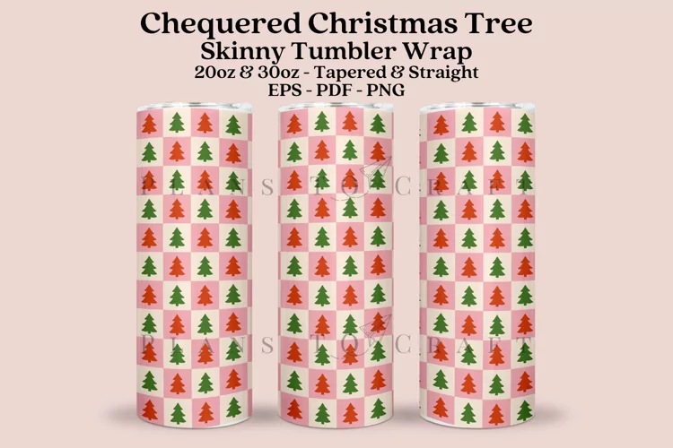 Chequered Christmas Tree skinny tumbler sublimation wrap, for 20oz and 30oz straight and tapered skinny tumbler.