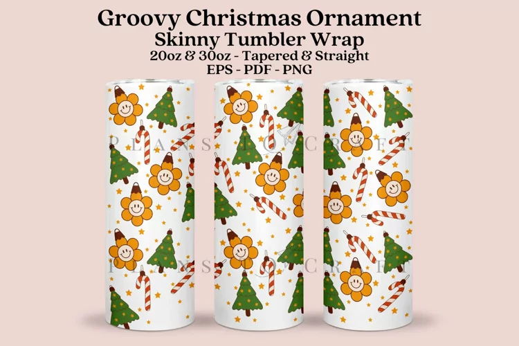 Groovy Christmas Ornament skinny tumbler sublimation wrap, for 20oz and 30oz straight and tapered skinny tumbler.