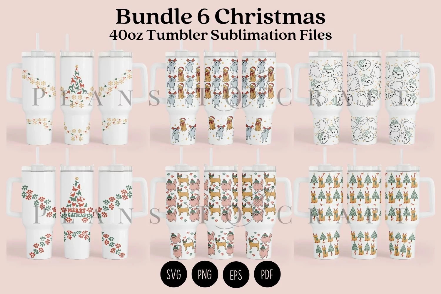 Bundle 6 Christmas 40oz Tumbler Sublimation Wrap SVG