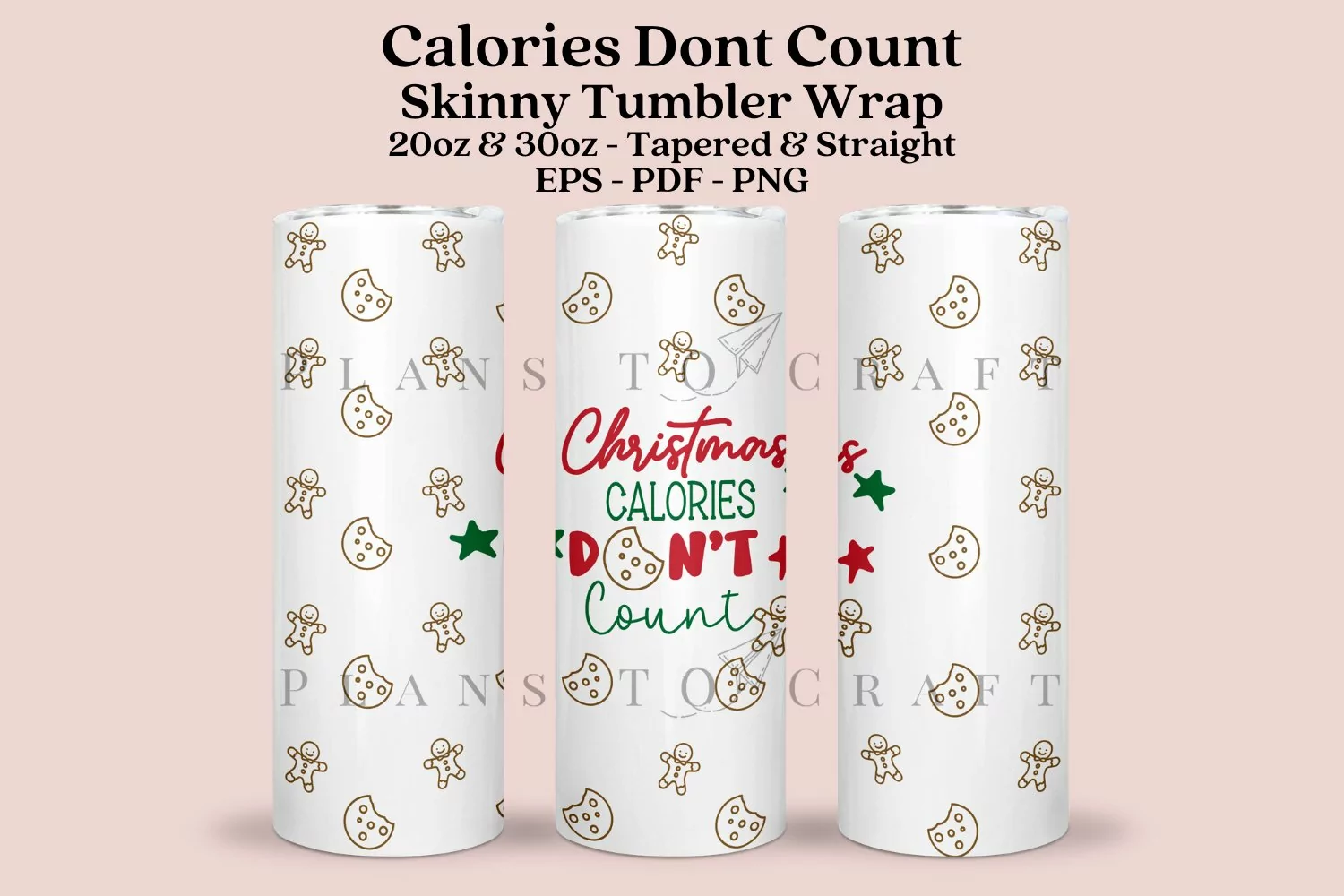 Christmas Calories Don't Count skinny tumbler sublimation wrap, for 20oz and 30oz straight and tapered skinny tumbler.