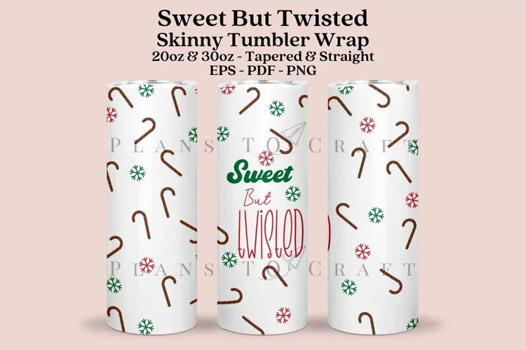 Sweet But Twisted Christmas Quotes skinny tumbler sublimation wrap, for 20oz and 30oz straight and tapered skinny tumbler.