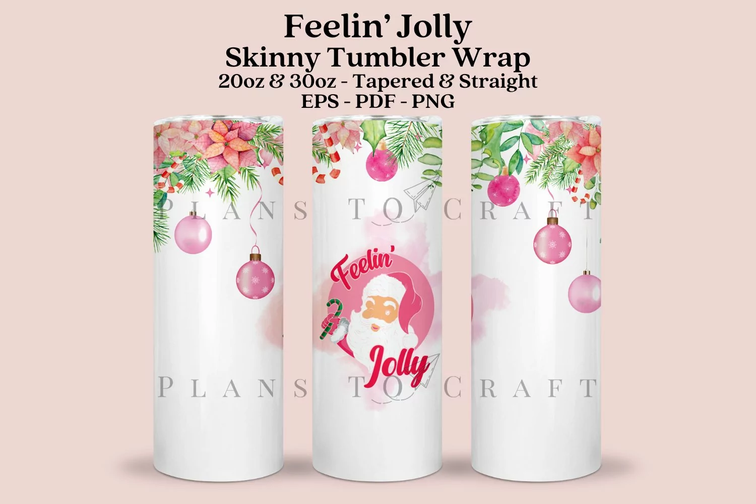 Feeling Jolly christmas pinkmas skinny tumbler sublimation wrap, for 20oz and 30oz straight and tapered skinny tumbler.