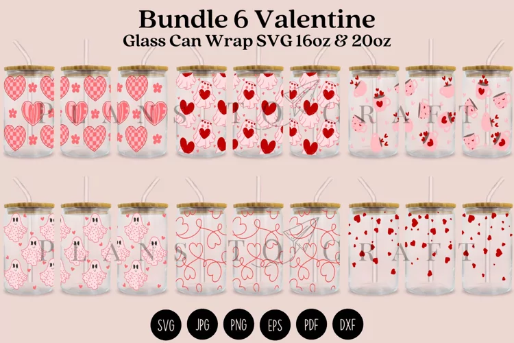 Bundle 6 Valentine Libbey Can Glass Wrap SVG