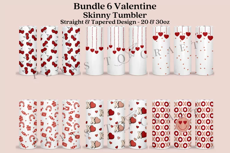 Bundle Valentine skinny tumbler sublimation wrap, for 20oz and 30oz straight and tapered skinny tumbler.