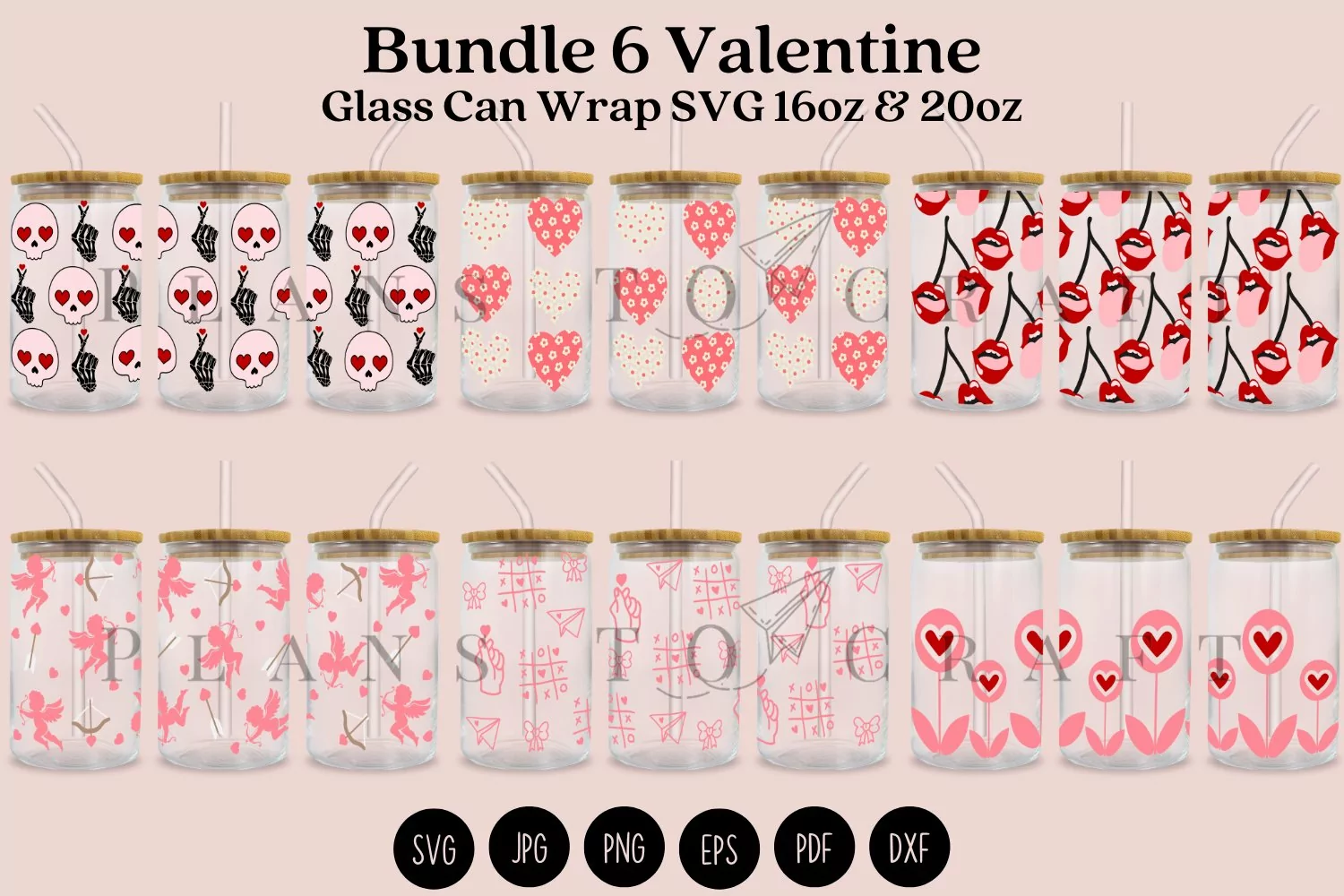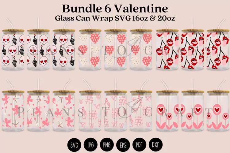 Bundle Valentine beer can glass full wrap for Libbey Glass 16oz and 20oz PNG, DXF, SVG, JPG, EPS, PDF for Cricut and Silhouette, digital download.
