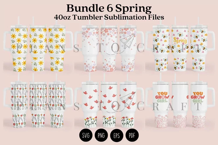 Bundle 6 Spring 40oz Tumbler Sublimation Wrap SVG example image 1