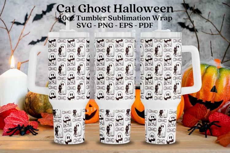 Cat Ghost Halloween 40oz quencher Tumbler Sublimation Wrap SVG PNG EPS PDF, instant download.Features: