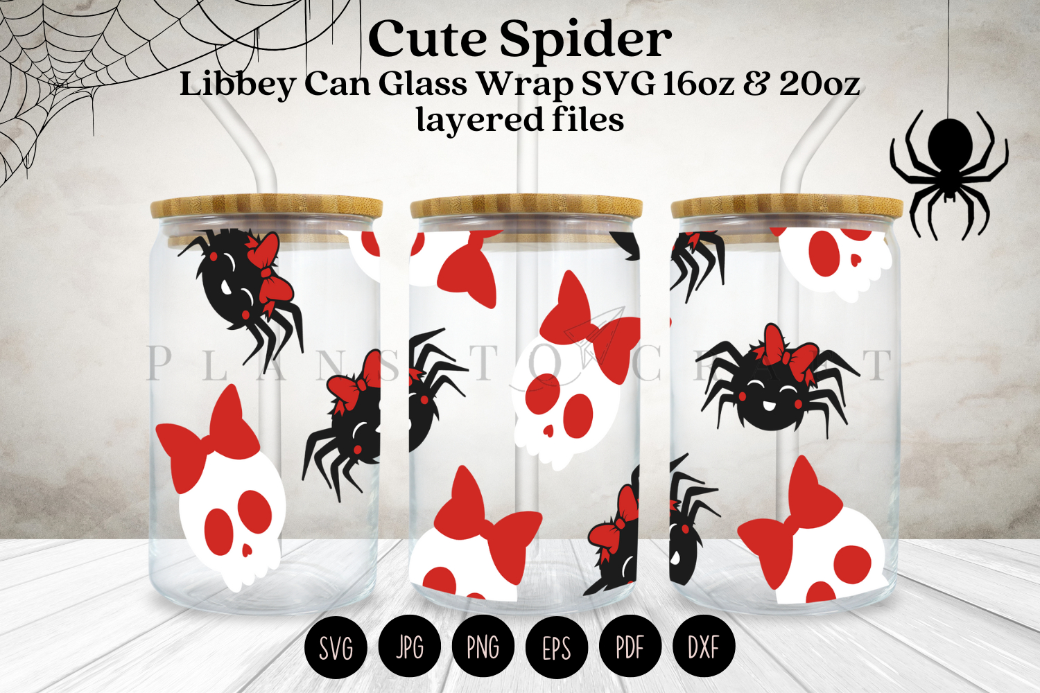 Cute Spider halloween beer glass can full wrap for Libbey Glass 16oz and 20oz PNG, DXF, SVG, JPG, EPS, PDF for Cricut and Silhouette, digital download.Features: