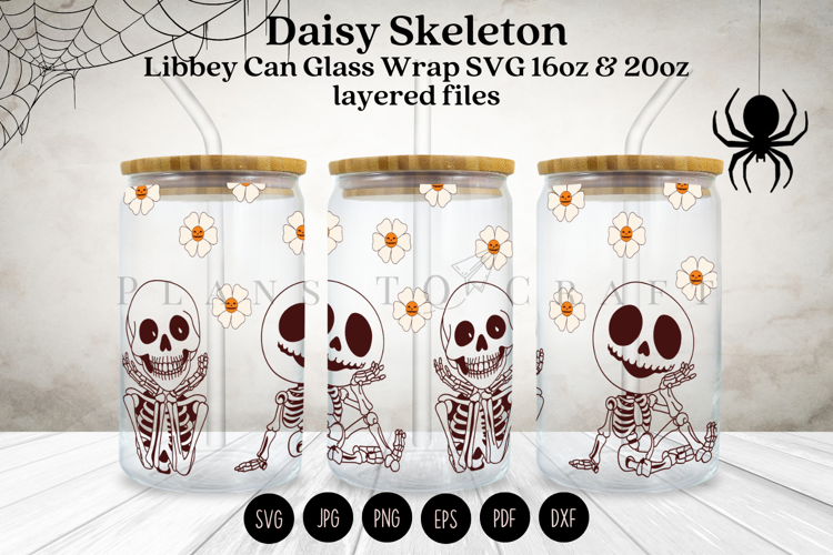Daisy Skeleton Halloween Libbey Glass Can Wrap SVG